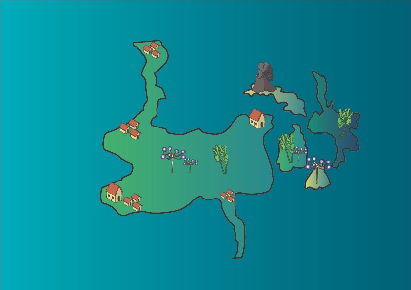 Gran humedad, muchos ríos, tierra muy fértil, gran variedad de flora y fauna, cultura enfocada a la naturaleza y lo místico, con tribus mayormente nómadas y ciudades Estado en las costas. Al Oeste se desarrolla el mercado entre los continentes. Posee islas tropicales al Este con especies exóticas de flora y fauna y riquezas minerales, tiene un volcán en la isla norte. Es una tierra en constante disputa entre el continente Alto y Bajo. Como método de transporte se utilizan jeeps, motocicletas, animales de carga y botes para llegar a las islas (con dichos vehículos se transportan los bienes del mercado hacia las ciudades de las costas). Nuevamente se puede hacer uso de dichos vehículos para acceder al continente bajo.